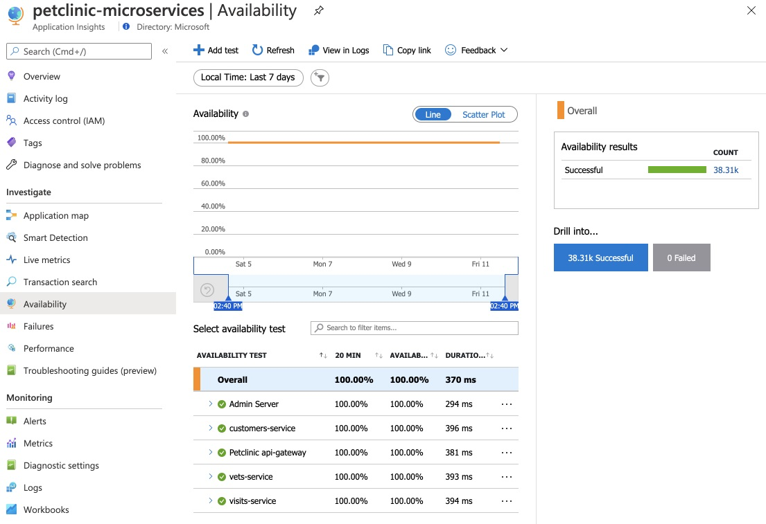 In the navigation pane, select Availability to monitor the availability and responsiveness of Web apps by creating Availability tests in Application Insights.
