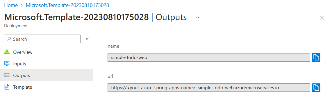 - Endpoint: https://<your-Azure-Spring-Apps-instance-name>-simple-todo-web.azuremicroservices.io/