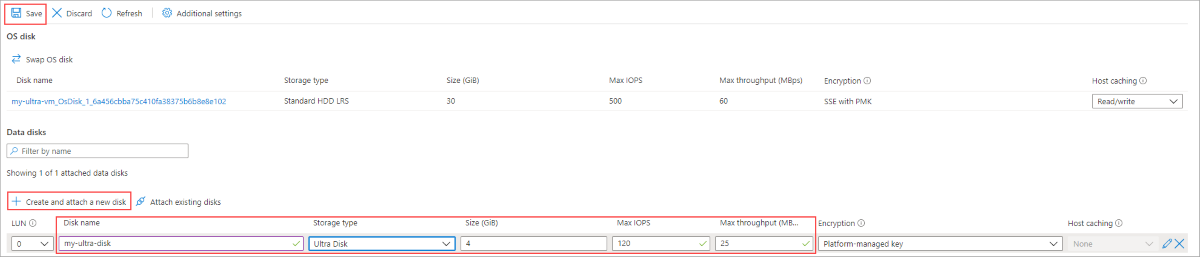 If you would like to create a VM with multiple Ultra Disks, refer to the sample Create a VM with multiple Ultra Disks.