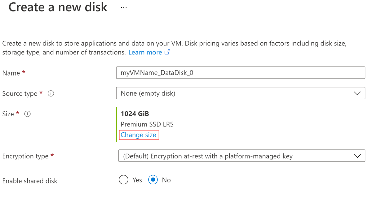 Change the values of Custom disk size (GiB), Disk IOPS, and Disk throughput to ones of your choice.