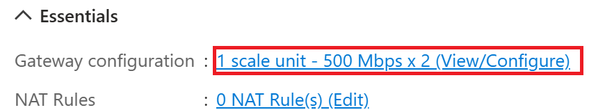 If you pick 1 scale unit = 500 Mbps, it implies that two instances for redundancy will be created, each having a maximum throughput of 500 Mbps. For example, if you had five branches, each doing 10 Mbps at the branch, you'll need an aggregate of 50 Mbps at the head end. Planning for aggregate capacity of the Azure VPN gateway should be done after assessing the capacity needed to support the number of branches to the hub.