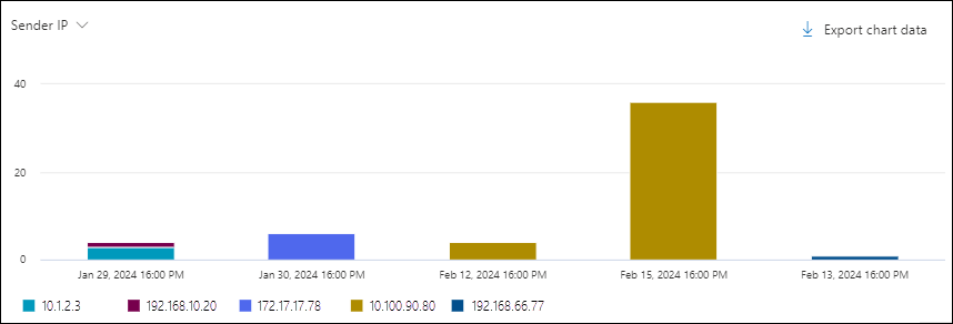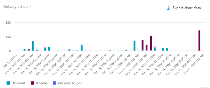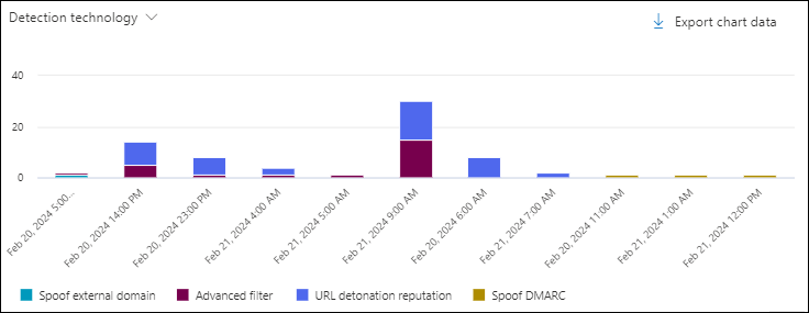 Export chart data to export filtered or unfiltered chart data to a CSV file.The charts and available pivots are described in detail in this article, including the differences between Threat Explorer and Real-time detections.
