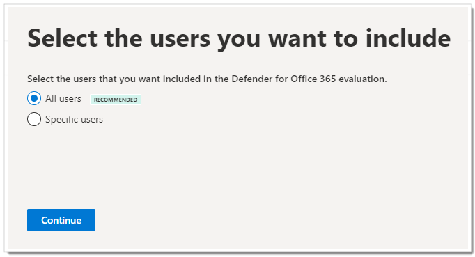 In the Select the users you want to include dialog, select All users, and then click Continue.