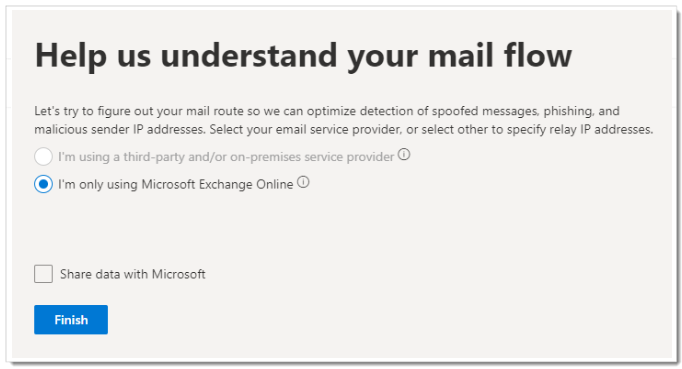 I'm only using Microsoft Exchange Online: The MX records for your domain point to Microsoft 365. There's nothing left to configure, so click Finish.