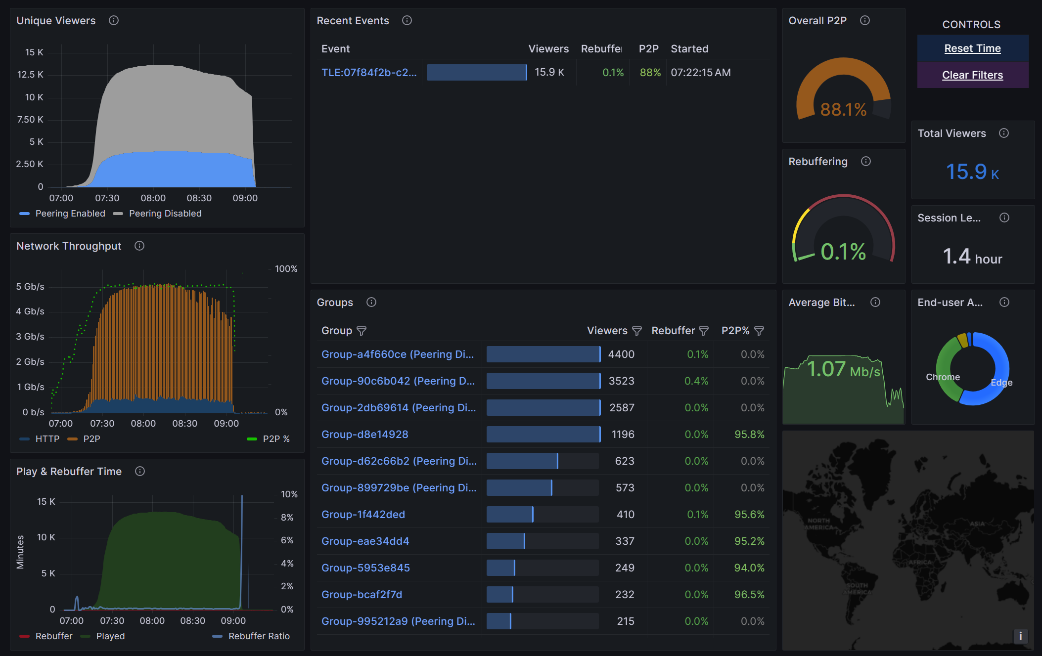 Microsoft eCDN provides various analytics tools that are useful for the monitoring and troubleshooting of video- and network-related issues. These tools ideally complement the existing Teams user experience and usage statistics and provide one unified and holistic view of everything that is going on with the streaming end to end. Visit the Analytics Overview page view your analytics.
