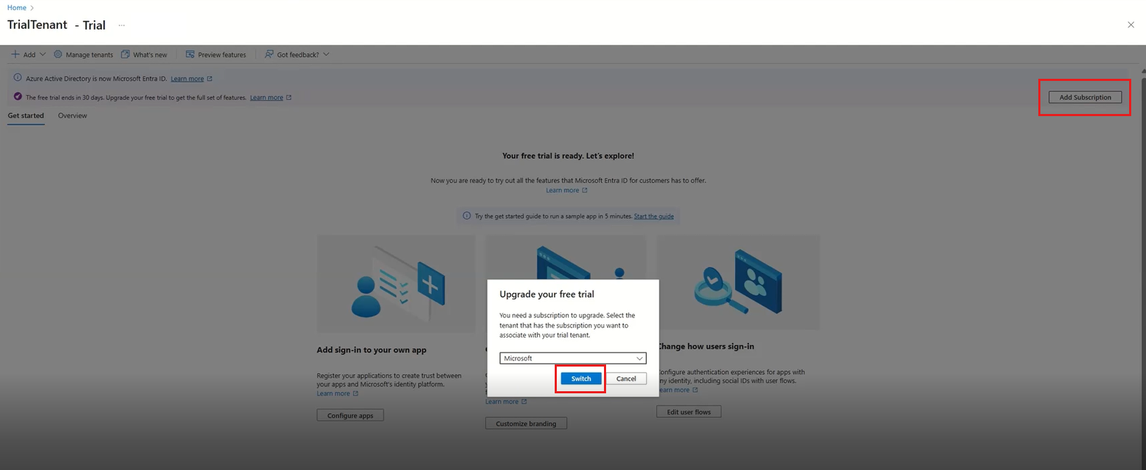 The trial tenant supports up to 10K objects, learn more about Microsoft Entra service limits here. During your free trial, you have the option to unlock the full set of features by upgrading to Azure free account.