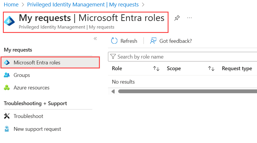 View the status of your activation requests and your role assignments under My Microsoft Entra roles.