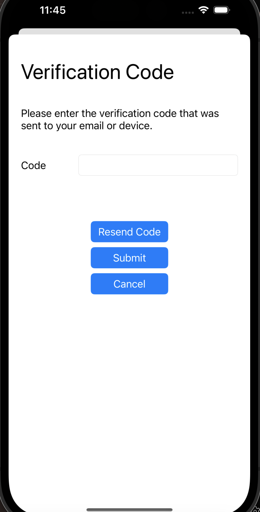 After you enter your email address on the previous screen, the application will send a verification code to it. Once you submit the received code, the application takes you back to the previous screen and automatically signs you in.