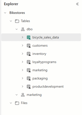Once you create the lakehouse, you can find a default schema named dbo under Tables. This schema is always there and can't be changed or removed. To create a new schema, hover over Tables, select …, and choose New schema. Enter your schema name and select Create. You'll see your schema listed under Tables in alphabetical order.