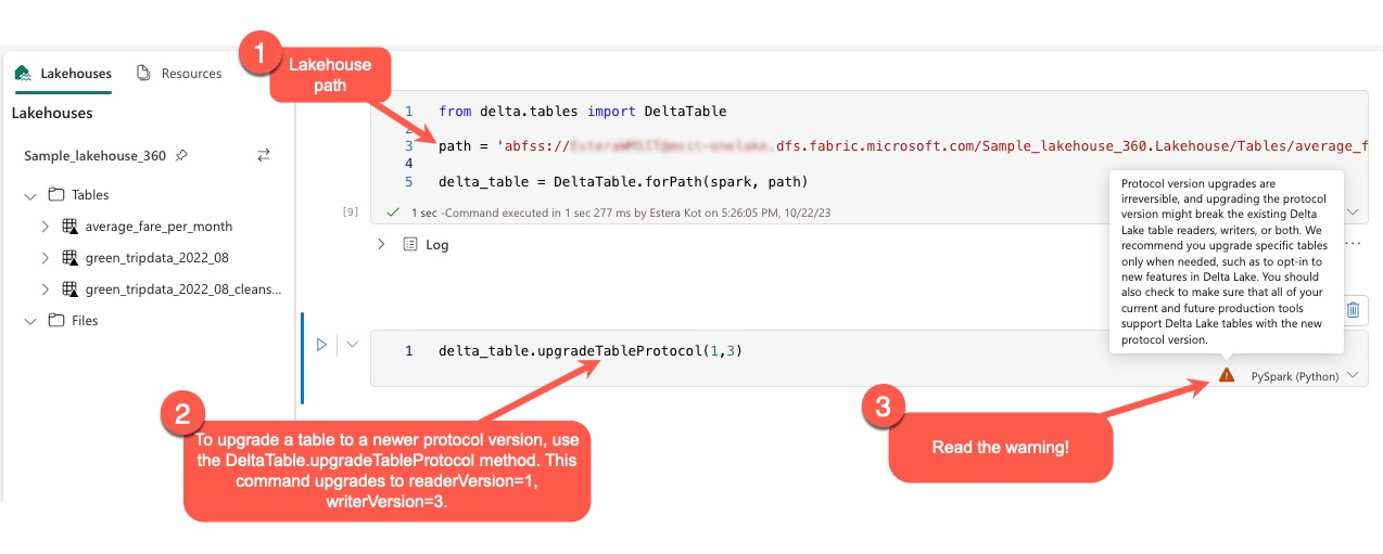 It's essential to note that when performing this upgrade, users receive a warning indicating that upgrading the Delta protocol version is a nonreversible process. This means that once the update is executed, it cannot be undone.