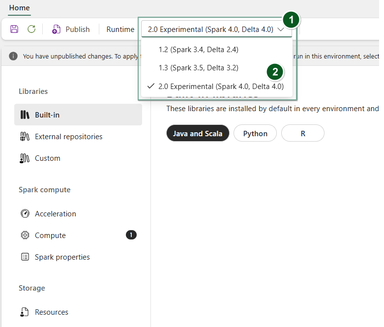 The Fabric runtime 2.0 experimental preview stage gives you early access to new features and APIs from both Spark 4.0 and Delta Lake 4.0. The preview lets you use the latest Spark-based enhancements right away, ensuring a smooth readiness and transition for future changes like the newer Java, Scala, and Python versions.