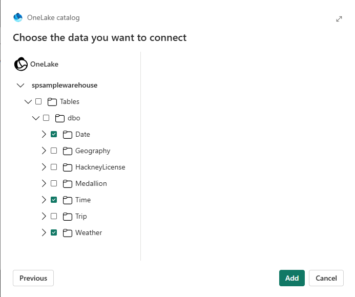 View all available data sources or only your data sources (My data) or your favorite data sources by using the category buttons at the top. You can use the Filter by keyword text box to search for a specific source. You can also use the Filter button to filter based on the type of the resource (KQL Database, Lakehouse, SQL Database, Warehouse). The following example uses the My data option.