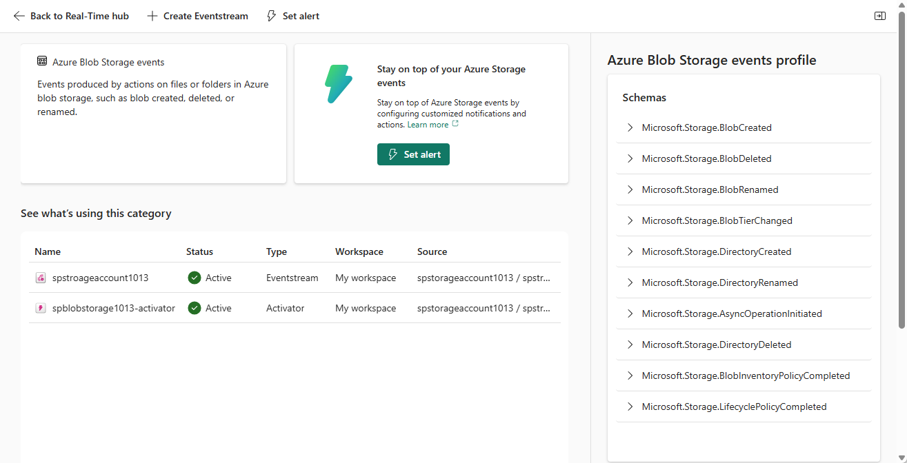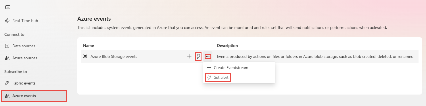 This article describes how to set alerts on Azure Blob Storage events in Real-Time hub.