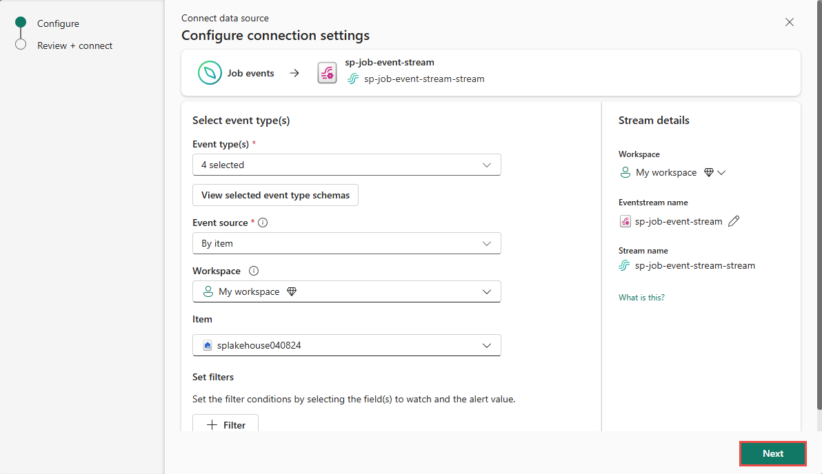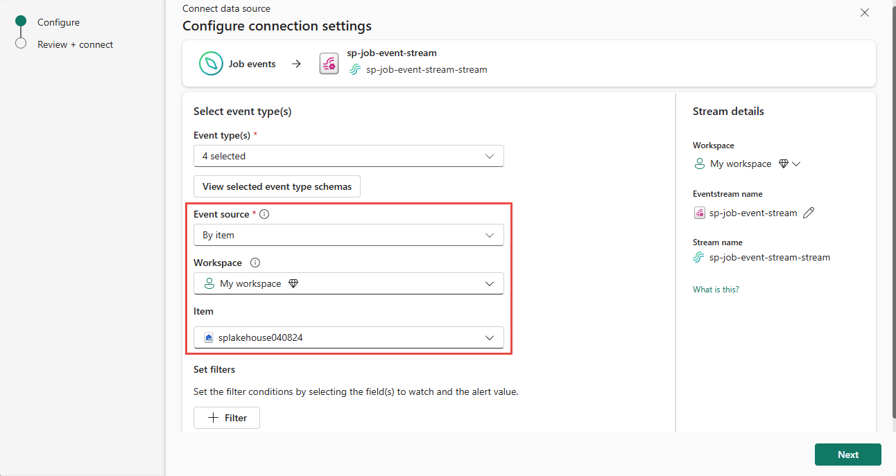 With Fabric event streams, you can capture these Job events, transform them, and route them to various destinations in Fabric for further analysis. This seamless integration of Job events within Fabric event streams gives you greater flexibility for monitoring and analyzing activities in your Job.