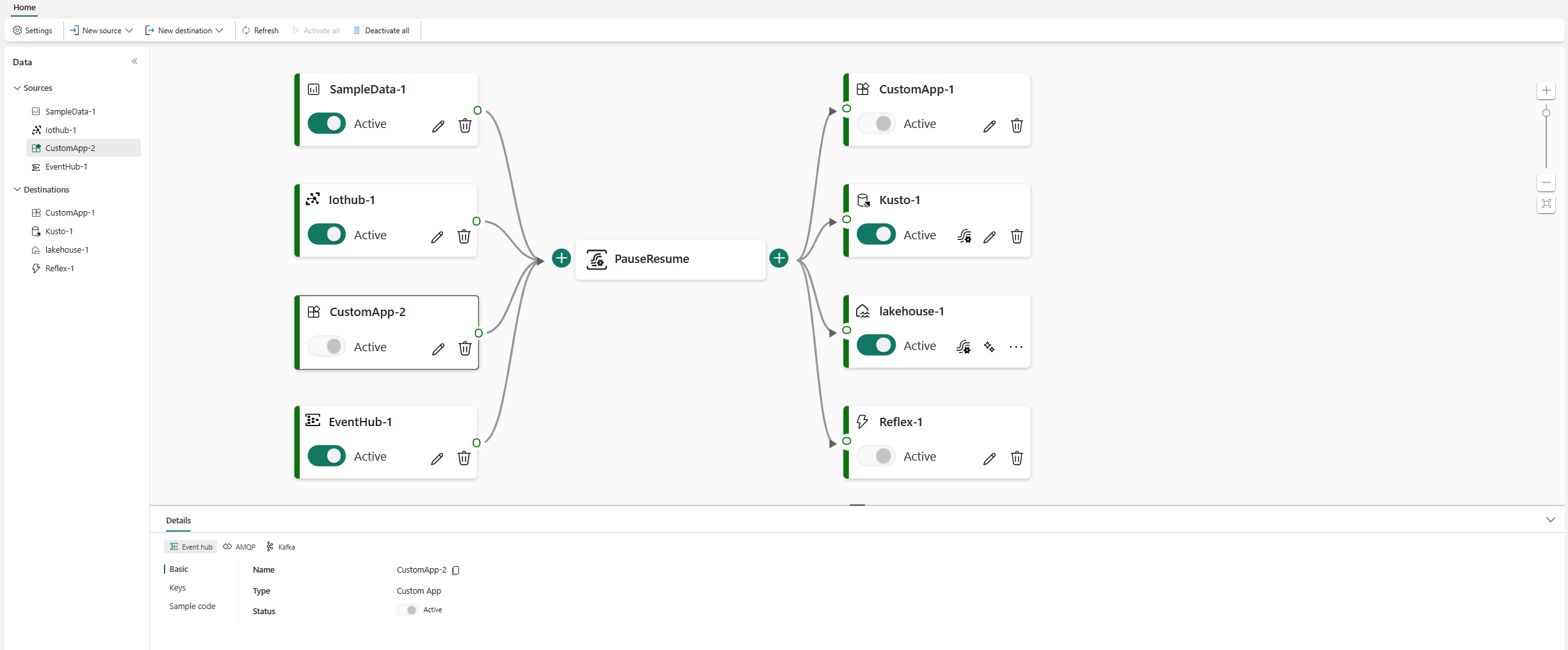Eventstreams provide you with source connectors to fetch event data from the various sources. More sources are available when you enable Enhanced capabilities at the time of creating an eventstream.
