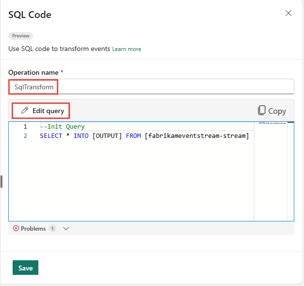 A SQL operator (preview), also called a SQL code editor, is a new data transformation capability in Microsoft Fabric eventstreams. SQL operators provide a code editing experience where you can easily define your own custom data transformation logic by using simple SQL expressions. This article describes how to use a SQL operator for data transformations in an eventstream.