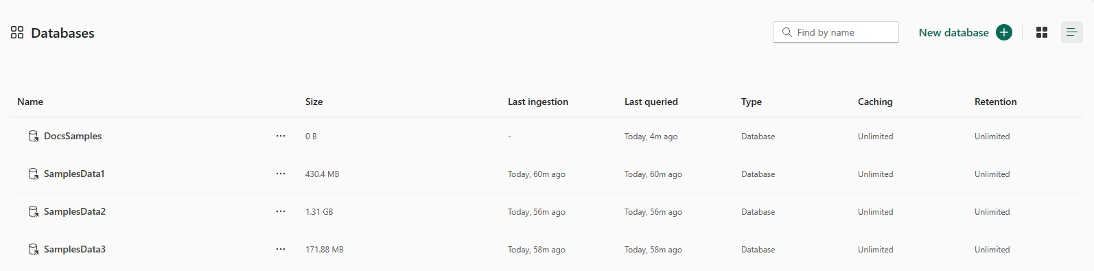 The databases overview page provides a summary of all the databases in the eventhouse.