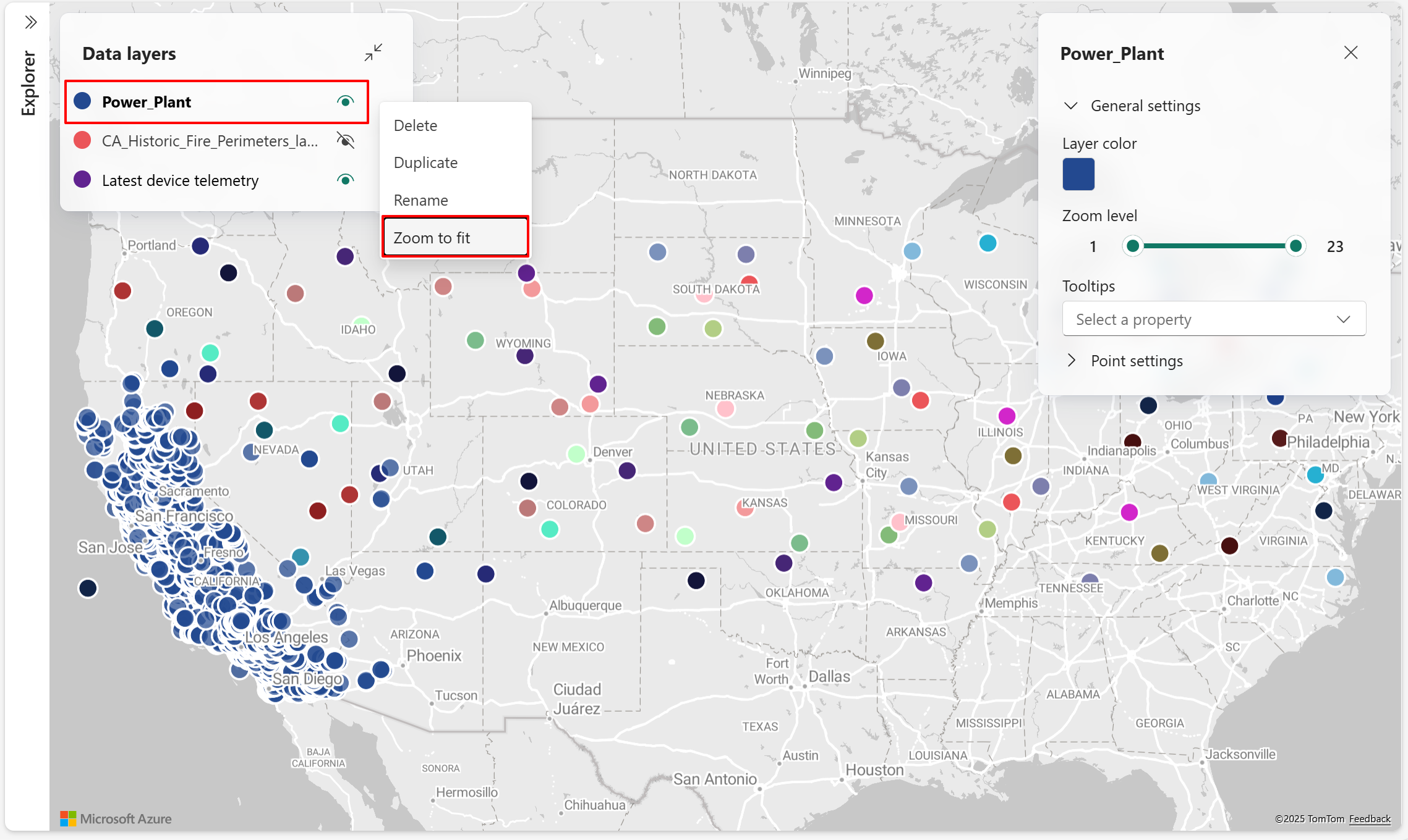 - Select Zoom to fit from the new layers drop-down menu in the Data layers view.
