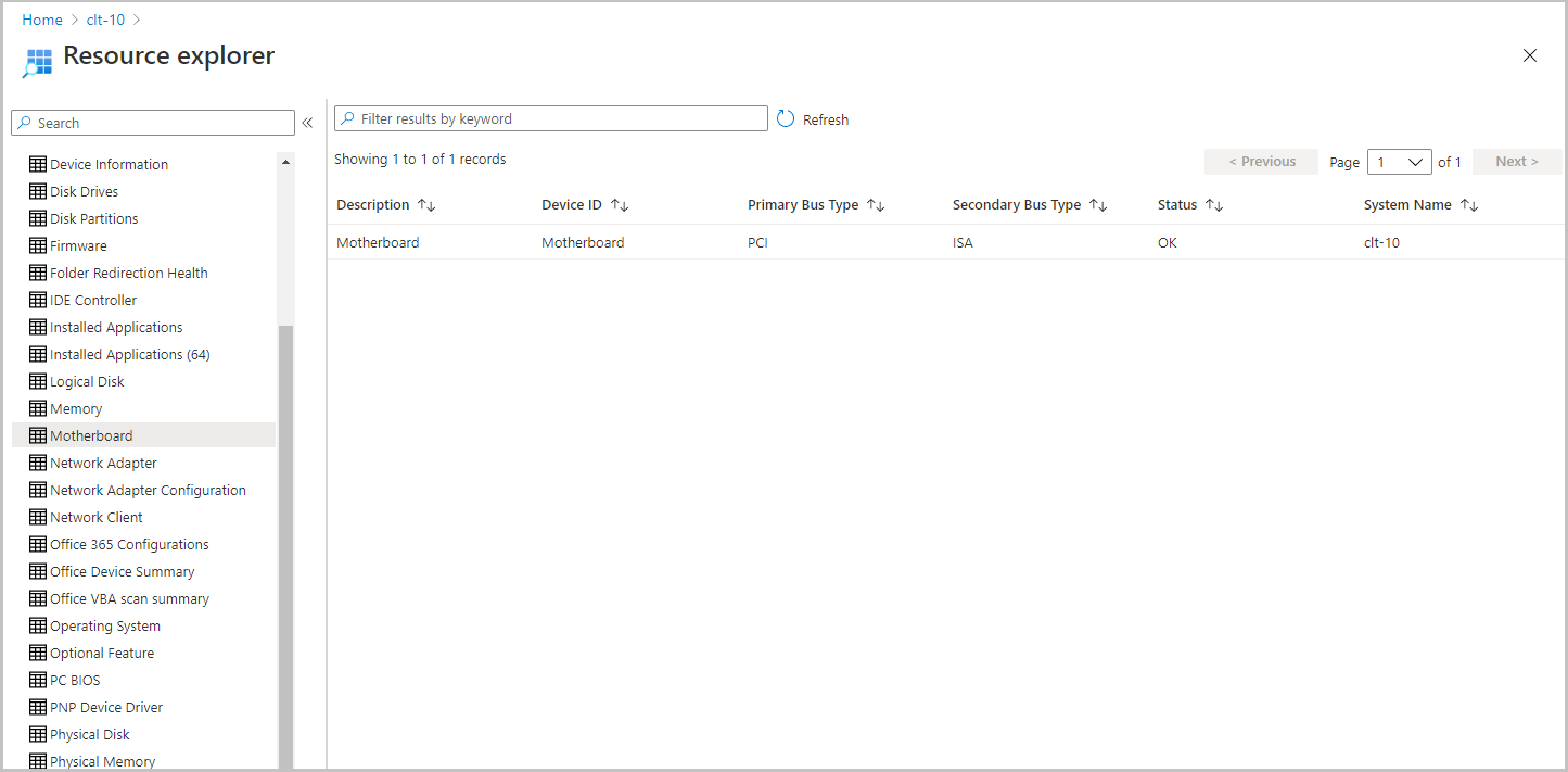 Select Resource explorer to view hardware inventory.