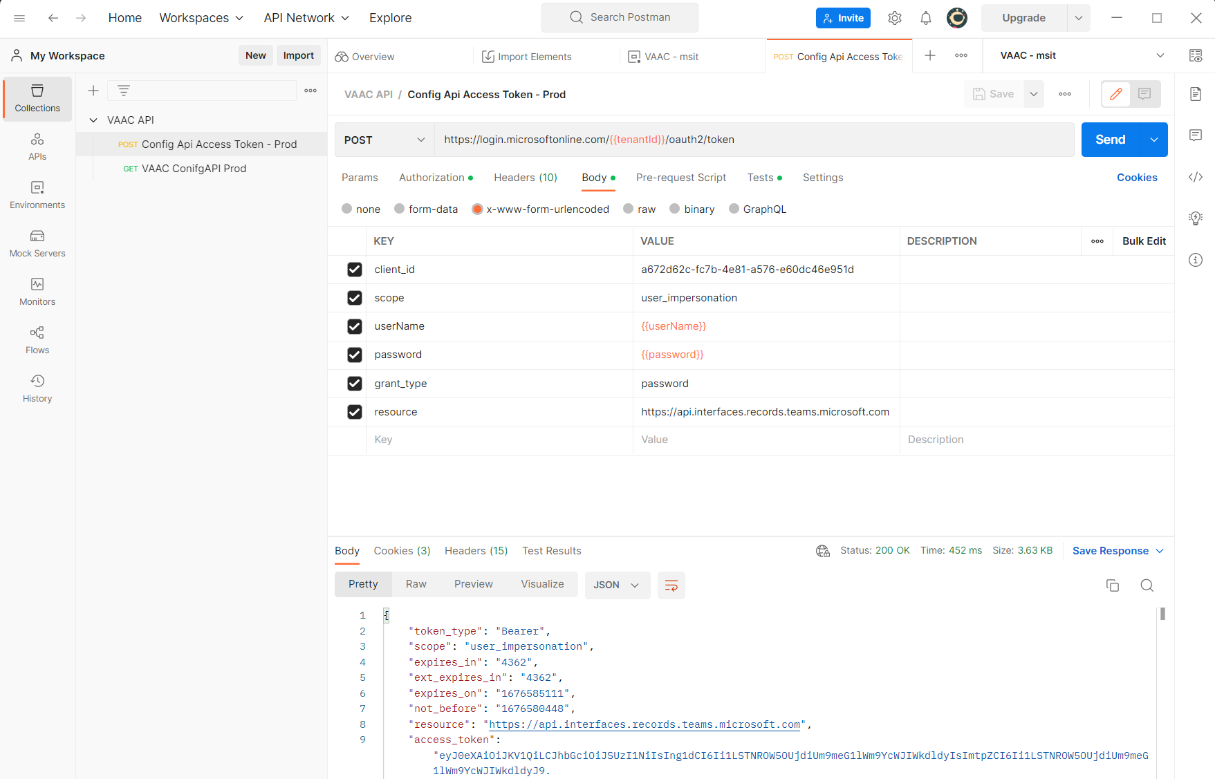 Select Config API Access Token - Prod and navigate to the Body tab.