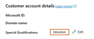 - Select Edit to request reverification of eduction status. If the updated customer details are eligible for education offers, Special qualifications is updated to Education. If you still see Not an Education Customer, you can contact Support for manual verification.