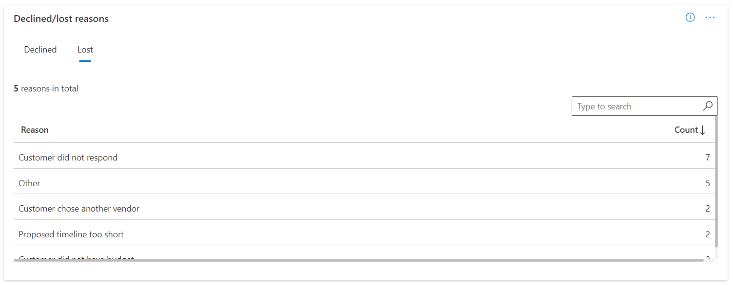 This section will help you to analyze the reasons why the leads are getting marked as Declined or Lost by your company. The options in these representations are the same reasons that your sellers have chosen while closing the lead as declined or lost.