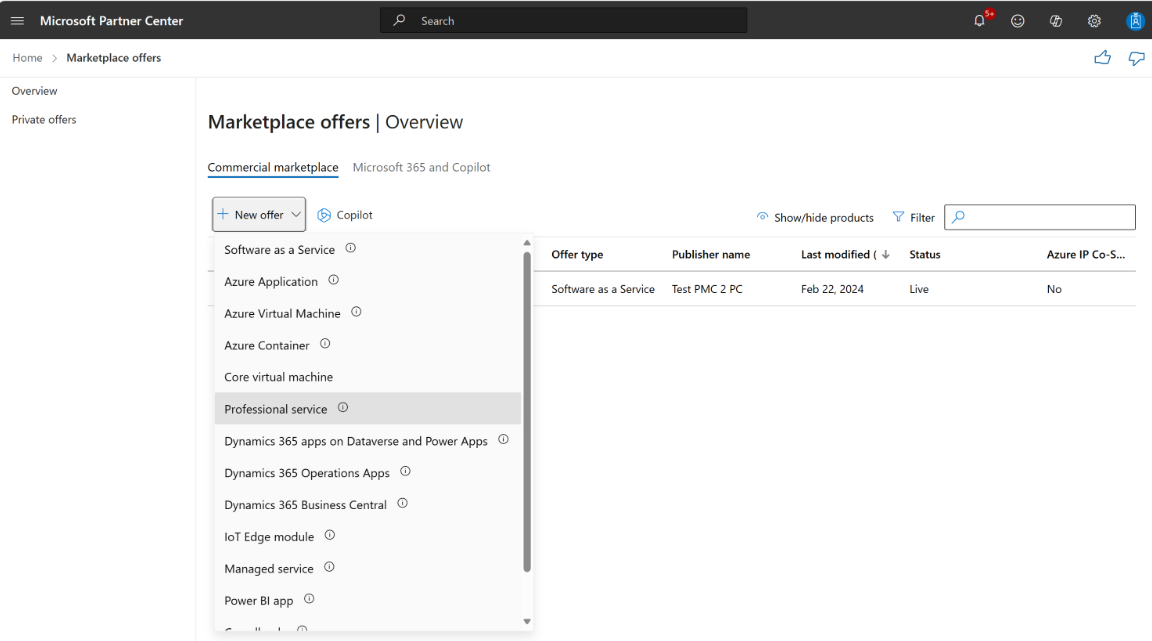 This article explains how to create a professional service offer for Microsoft Marketplace using Partner Center.