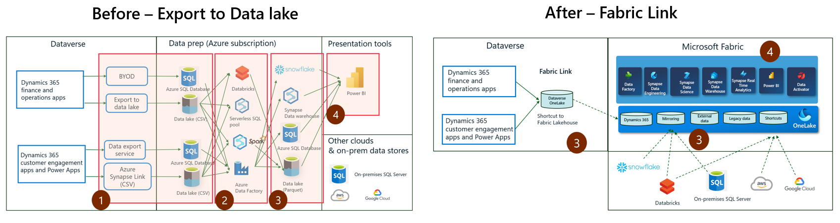 If you're a finance and operations apps customer currently using BYOD or Export to Data Lake features, by upgrading to Azure Synapse Link or Fabric link, you can benefit from a simplified data integration architecture resulting in reduced operational costs: