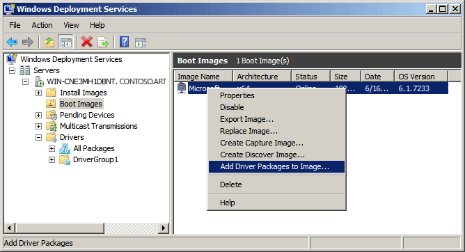 In Windows Server 2008 R2, you can use Windows Deployment Services to add driver packages to the server and configure them to be deployed to client computers along with the install image. Note that this functionality is only available when you are installing images of the following operating systems: Windows Vista with SP1, Windows Server 2008, Windows 7, and Windows Server 2008 R2. This section walks you through configuring this functionality, but you must have a configured server before you begin. For instructions on how to configure your server, see the Windows Deployment Services Step-by-Step Guide (https://go.microsoft.com/fwlink/?LinkId=84628).For a complete list of what is new in this version of Windows Deployment Services, see Windows Deployment Services: What's New.