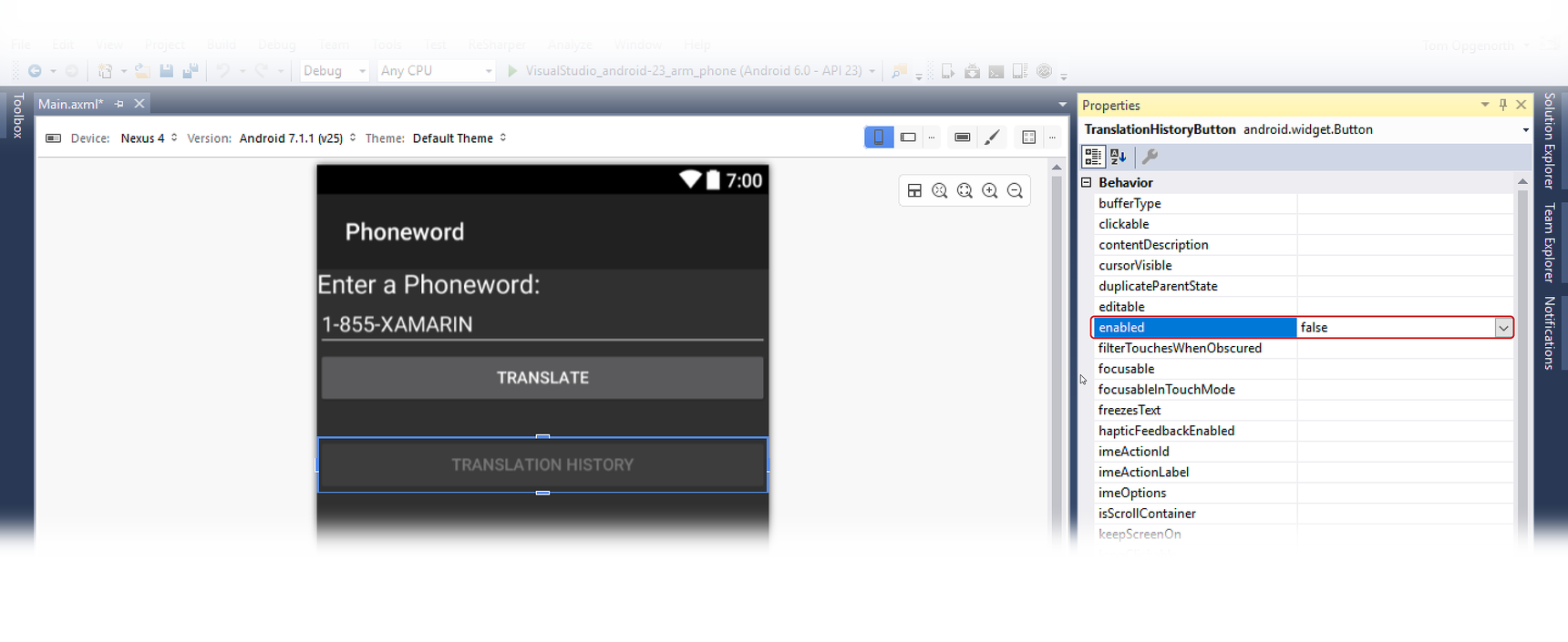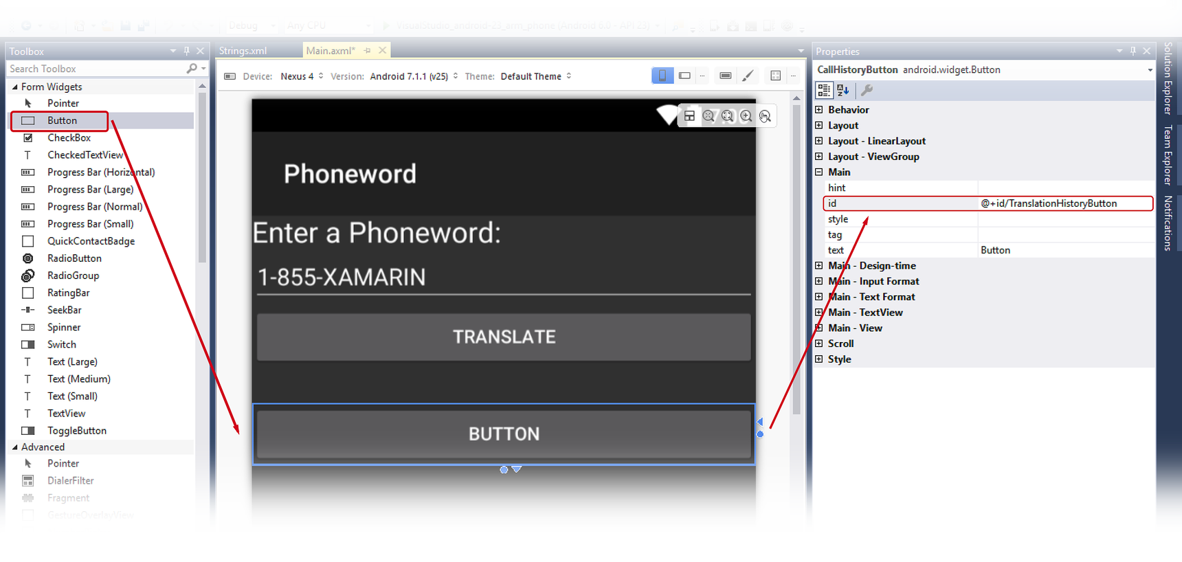 Start by opening the Phoneword application in Visual Studio and editing the Main.axml file from the Solution Explorer.