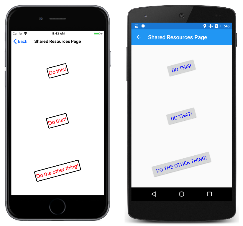 One of the most common types of objects stored in resource dictionaries is the Xamarin.Forms Style, which defines a collection of property settings. Styles are discussed in the article Styles.