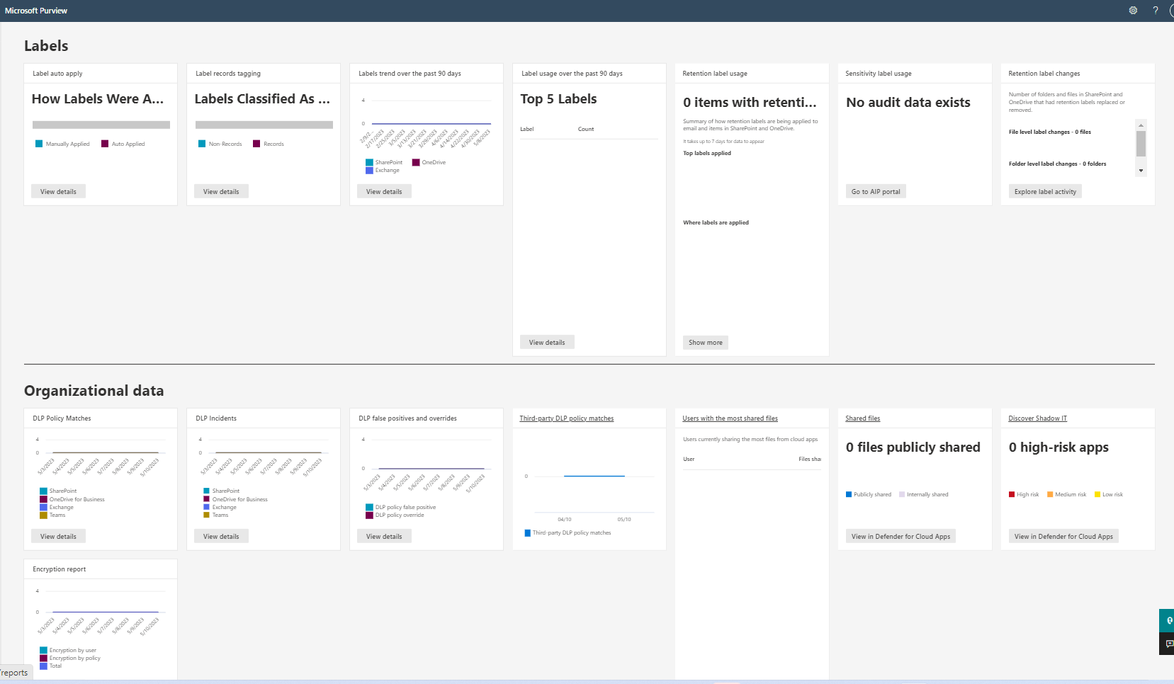 By using the greater reporting functionality within the Microsoft Purview portal, you can create and quantify a macro-view of compliance. Here's an example.