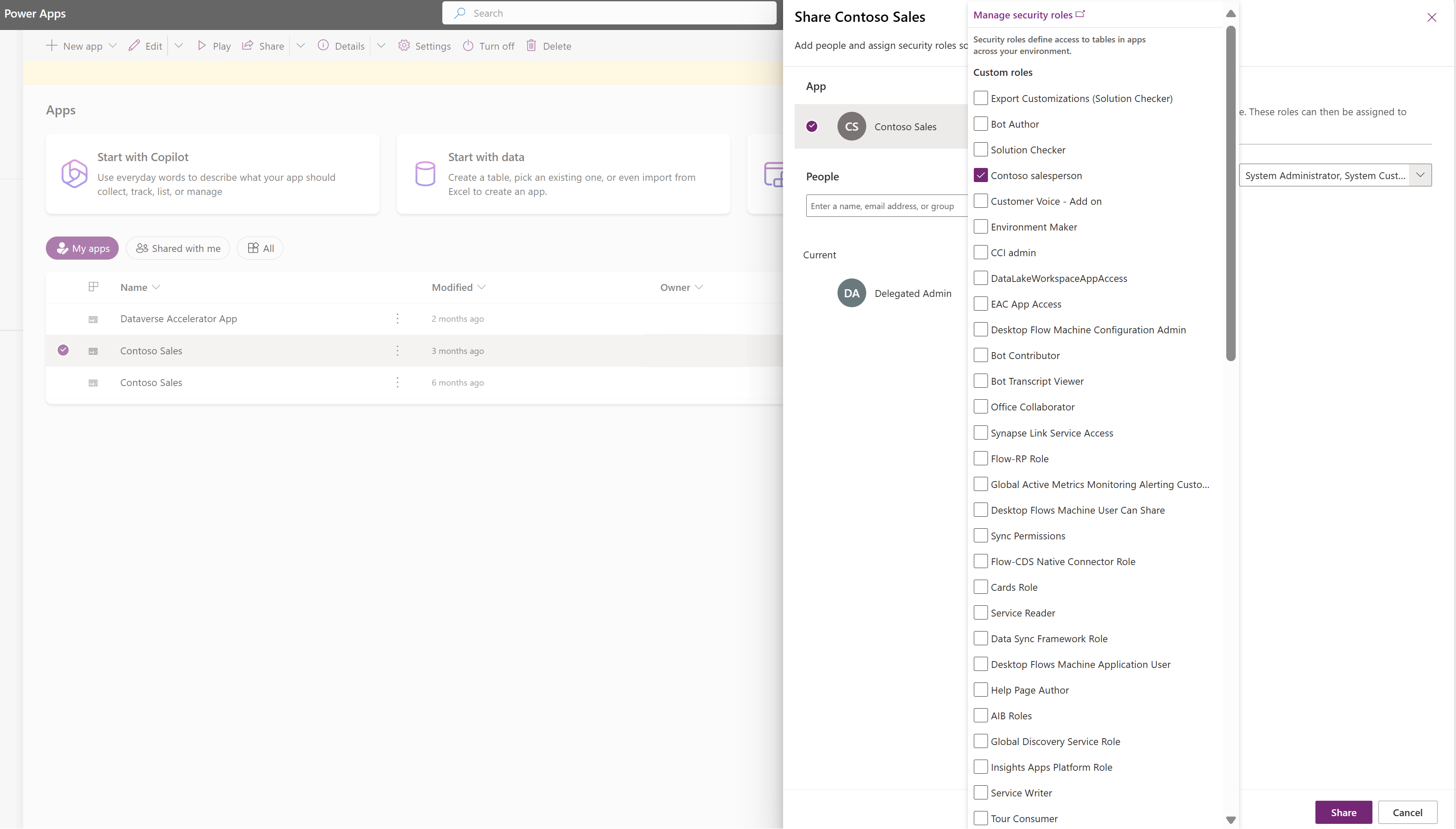 Before proceeding, it’s important to confirm that the necessary security roles were created and configured in Microsoft Dataverse. If these roles aren't yet defined, you need to work with your Power Platform administrator to set them up. Once the roles are ready, you can follow the steps outlined next to share your app effectively.