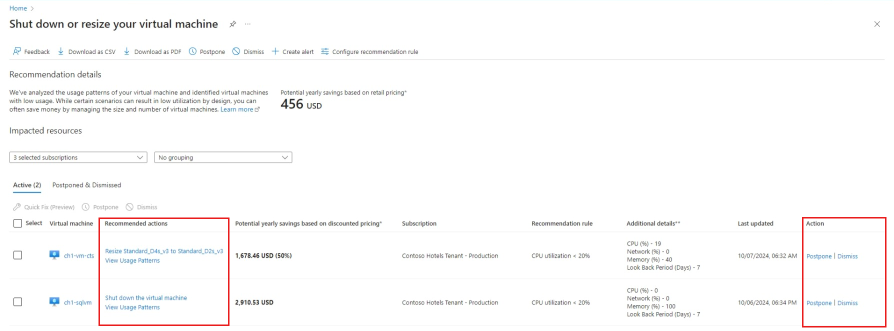 If you know that you don't want to resolve that issue, you can select Dismiss, and Advisor removes it from the list and no longer shows it as a recommendation for that resource. You can always revisit your dismissed recommendations in the Postponed & Dismissed tab under any of your recommendations.