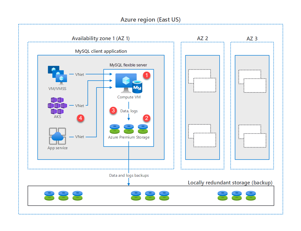- In addition, you have the option to co-locate your various client apps connected to the MySQL flexible server, within the same availability zone.