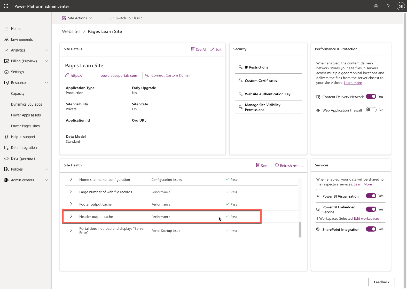 2. In the left pane, expand Resources and then select Power Pages sites.