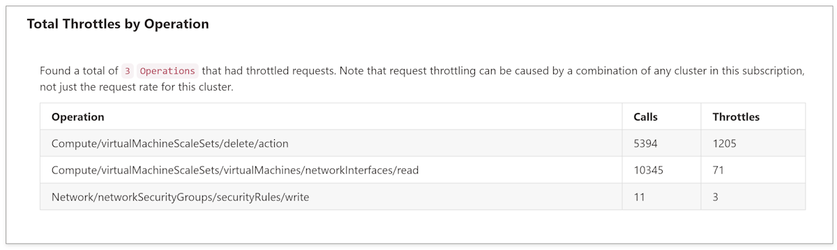 Request Rate Throttling has been detected for your Cluster: This diagnostic provides some general recommendations if throttling has been detected in the current AKS cluster.