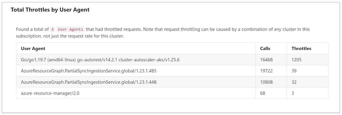 management.azure.com; anything else is a lower-layer resource provider. - User agent: Requests with a specified user agent that were throttled.