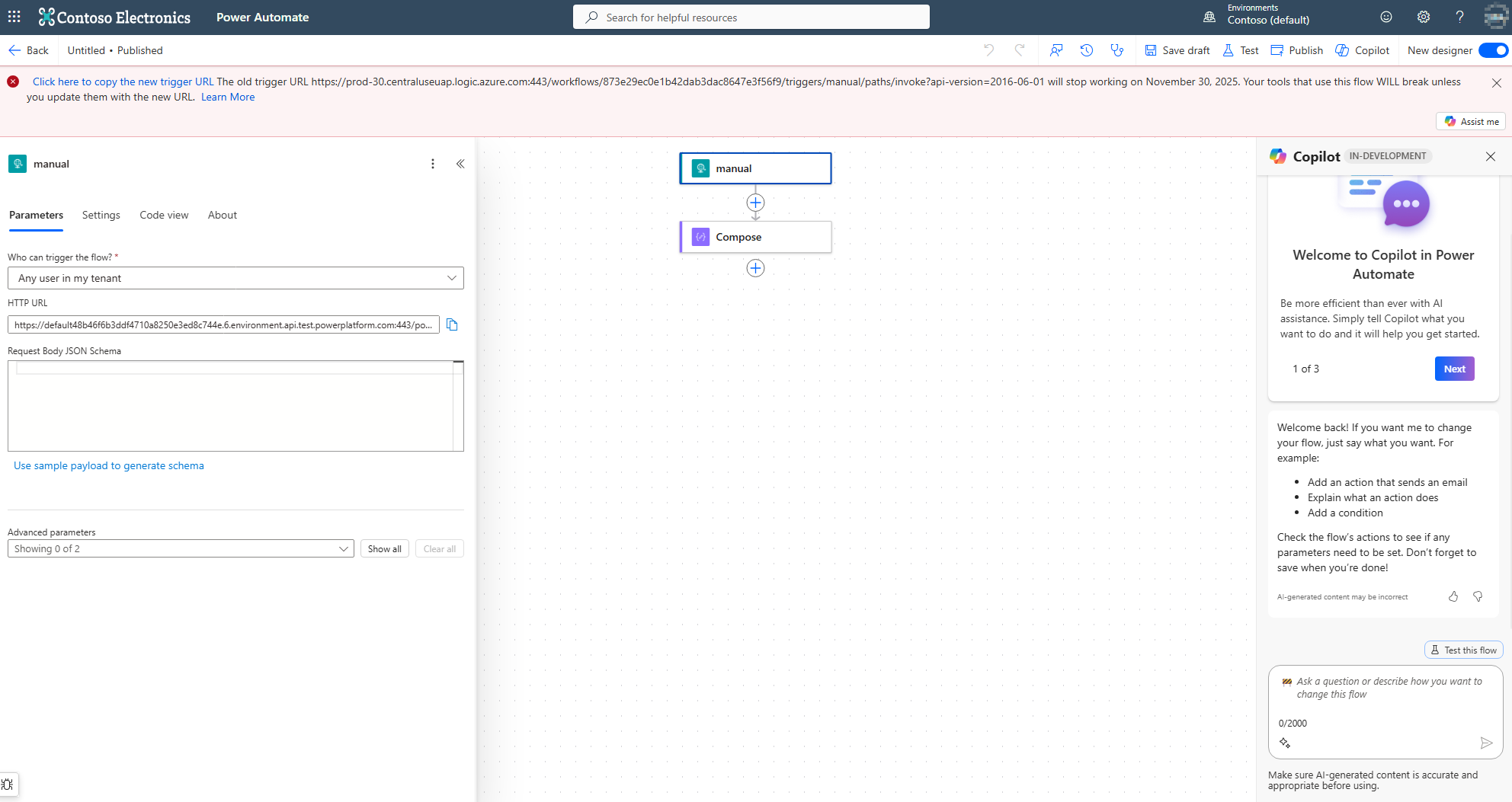 Click here to copy the new trigger URL. The old trigger URL <trigger URL> stops working on November 30, 2025. Your tools that use this flow will break unless you update them by using the new URL.