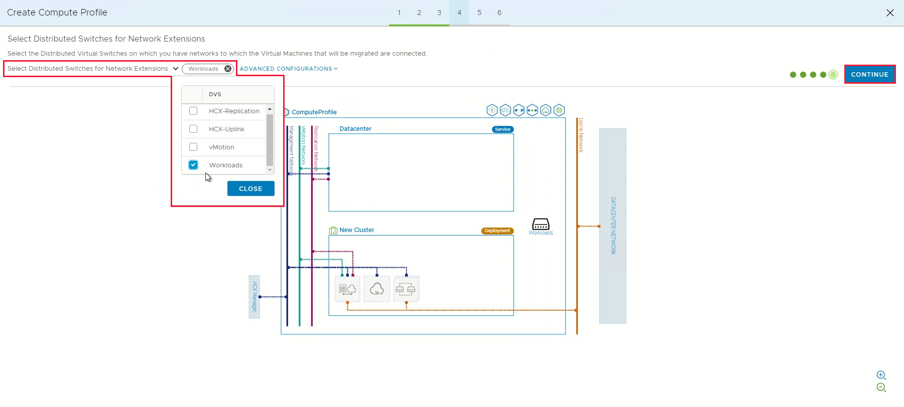 Seleccione los servicios que se van a habilitar, como la migración, la extensión de red o la recuperación ante desastres y, a continuación, seleccione Continue (Continuar).