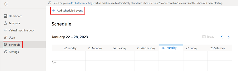 1. En la página Programación del laboratorio, seleccione Agregar evento programado en la barra de herramientas.
