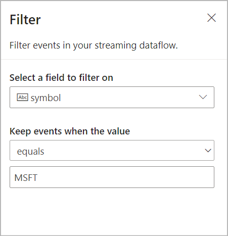 En el área Filtro, seleccione un campo para filtrar los datos entrantes con una condición.