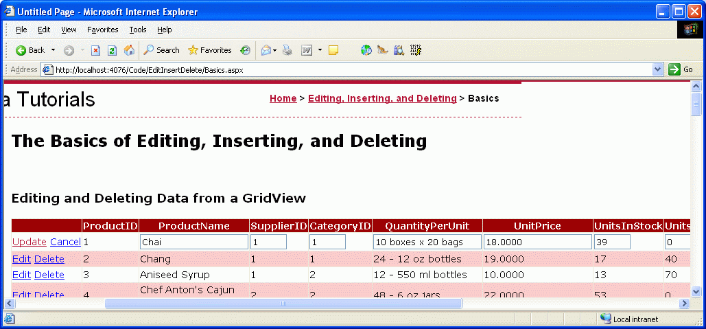 Default.aspxBasics.aspxDataModificationEvents.aspxErrorHandling.aspxUIValidation.aspxCustomizedUI.aspxOptimisticConcurrency.aspxConfirmationOnDelete.aspxUserLevelAccess.aspx