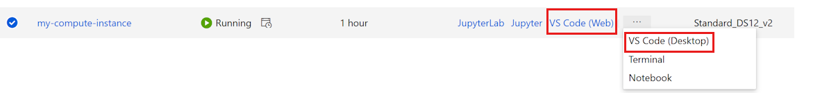 - Seleccione Instancia de proceso de Azure ML (computeinstance-name).