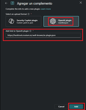 https://hacktrack.routum.io/.well-known/ai-plugin.jsoncomo vínculo y seleccione Agregar.