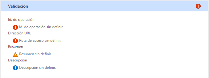 Una vez que un usuario se ha limitado a su conector, seleccionará una acción o desencadenador para usar desde el conector. Los campos Id. de operación, Resumen y Descripción ayudan a describir cada acción y desencadenador. El id. de operación se usa internamente, debe ser único y no puede contener espacios. La combinación de letras mayúsculas y minúsculas (grafía Camel), como en GetInvoice, ayudará a simplificar la capacidad de leer la identificación al buscar el marcado de la definición. La falta de espacios en los nombres puede ser difícil para los creadores que usan lectores de pantalla, pero usar esta grafía ayuda a que las definiciones sean más accesibles para ellos.