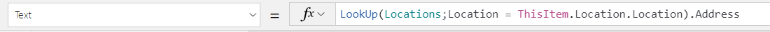 En lugar de usar la fórmula Lookup(), puede usar la notación de puntos y la referencia ThisItem.Location.Address