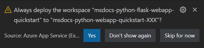 App Service détecte automatiquement la présence d’une application Flask. Aucune configuration supplémentaire n'est nécessaire pour ce guide de démarrage rapide.