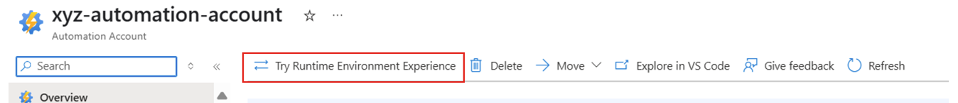 Dans la page Vue d’ensemble , sélectionnez Essayer l’expérience d’environnement d’exécution, si ce n’est pas déjà le cas dans la nouvelle expérience.