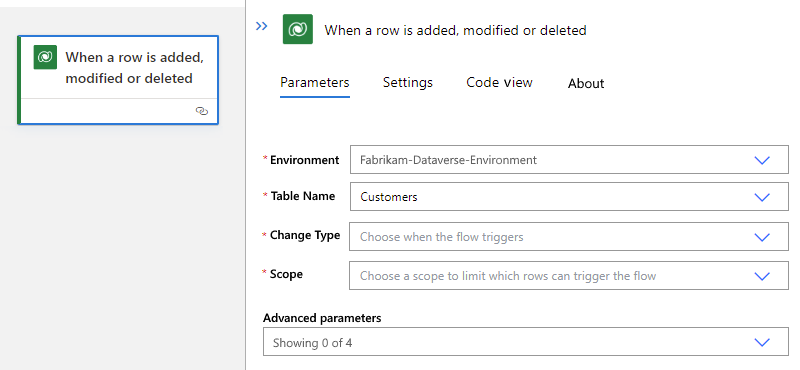 Suivez les étapes générales pour ajouter le déclencheur Microsoft Dataverse approprié pour votre scénario.